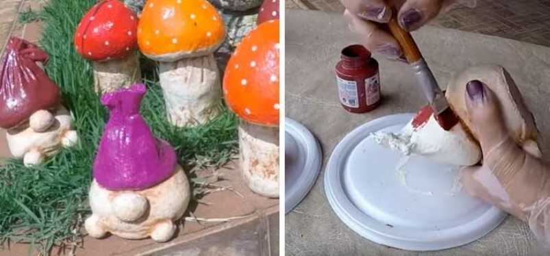 Если вы впервые собираетесь работать с бетоном, то стоит начать с самых простых изделий, например, вот с таких симпатичных грибочков.