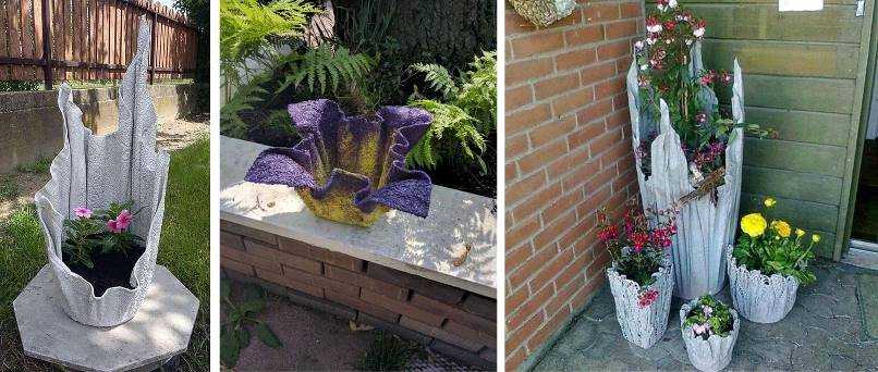 Место установки подобного кашпо ничем не ограничено, благодаря высокой прочности изделия. При этом на зиму вазон следует убирать или, как минимум, перевернуть, так как замерзшая вода разрушит поделку.