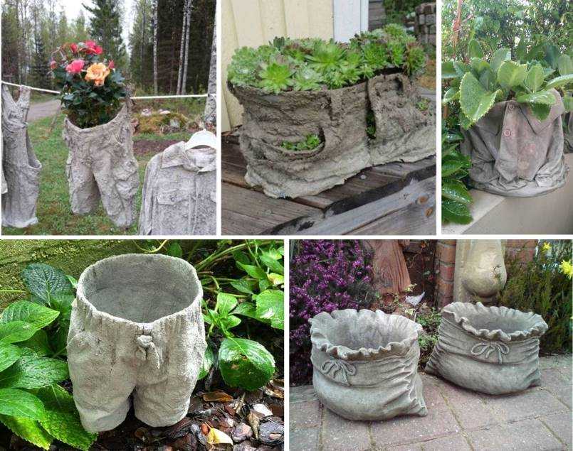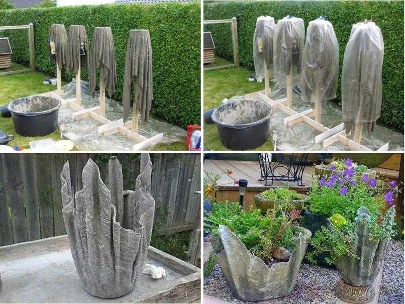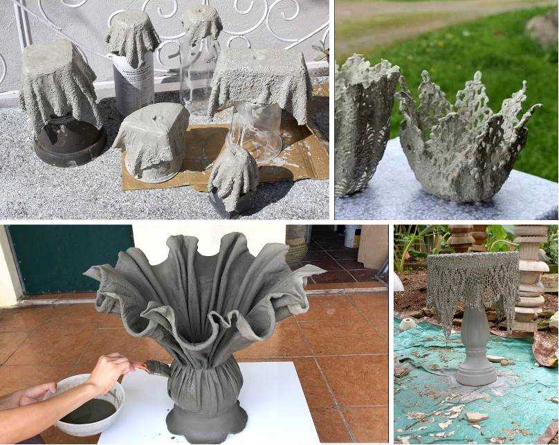 В качестве формы подойдут различные пластиковые емкости, к которым цемент не пристывает. Дополнительные возможности при изготовлении поделки возникают при использовании ажурной ткани.