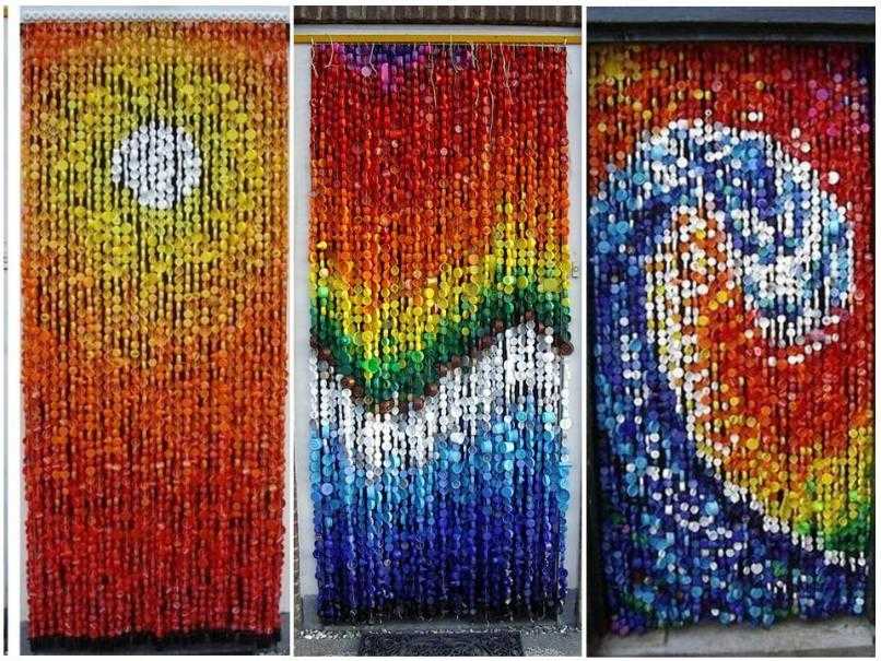 Для летних занавесей нужно большое количество крышек, но так же, как и на панно, можно создать любой сюжет
