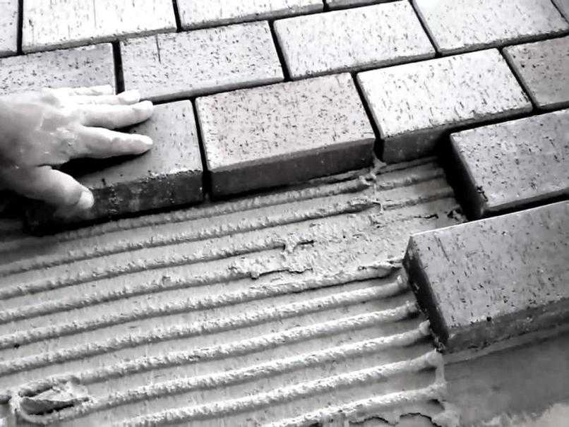 Для сложных технологий укладки используется сухой метод (на песчаную или гравийную подушку), т.к. не требуется точно соблюдать время работы, поэтому можно аккуратно выкладывать мозаичный рисунок. При клеевом методе можно заменить поврежденный элемент или участок тротуара, не разбирая основание кладки.