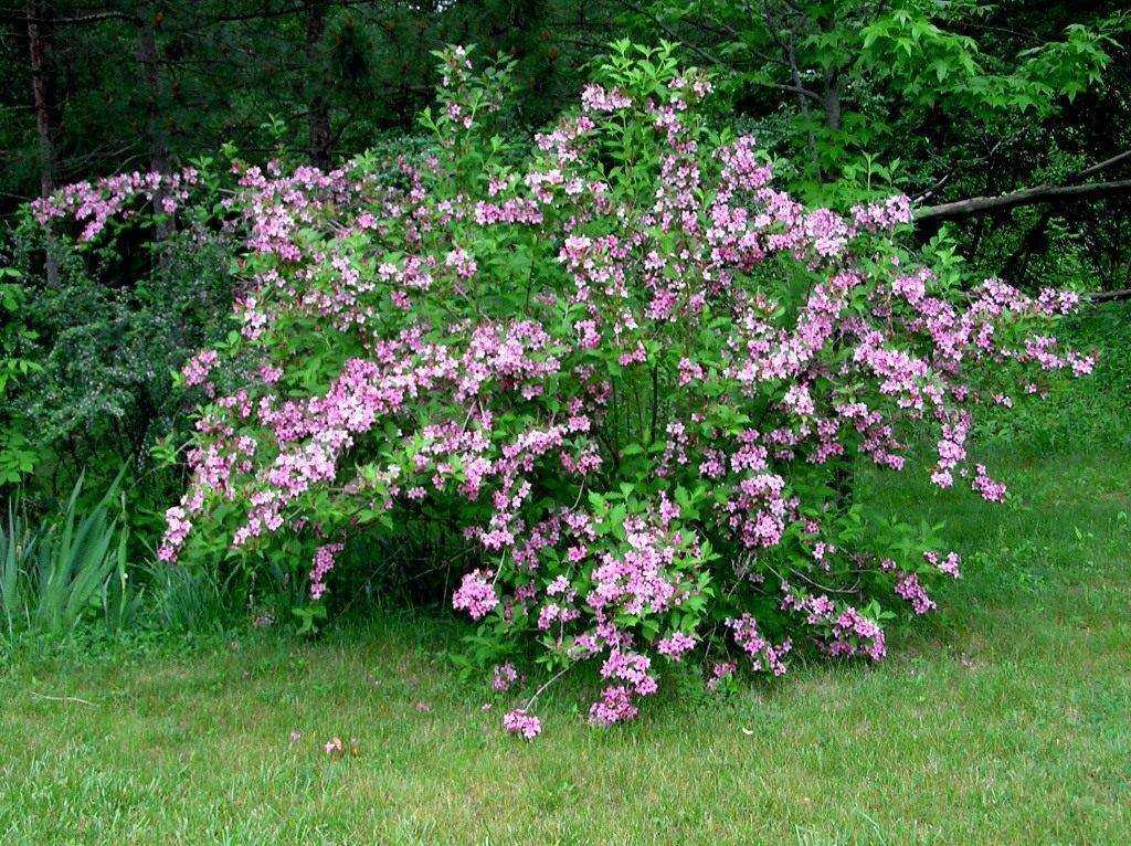 Вейгела приятная — словно оправдывая свое название, этот вид поражает скромным изяществом. Куст невысокий — до 0,5-1,5м. Цветение обильное. Цветки крупные, лилово-розовые.