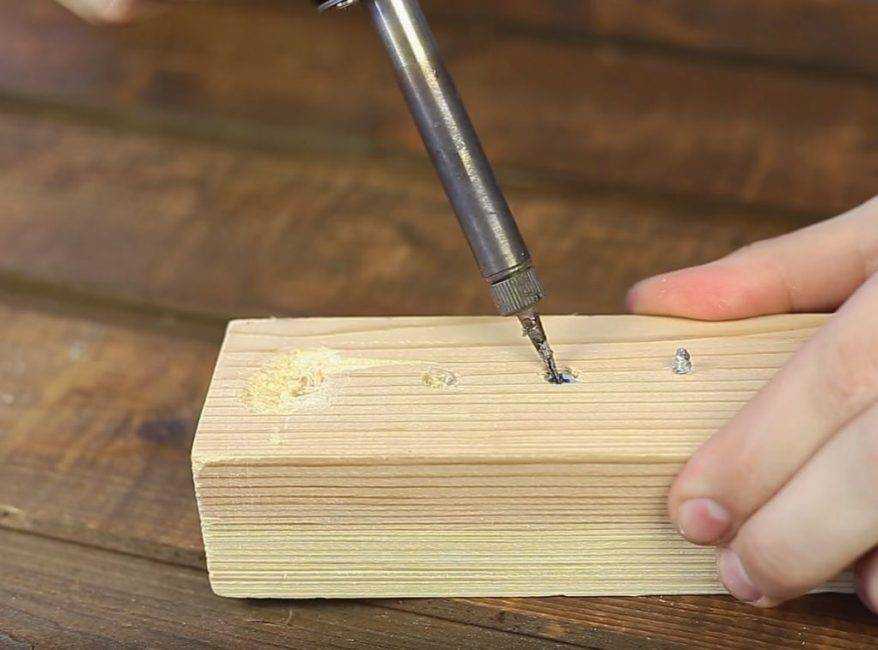 Этот способ не поможет выкрутить сломанный саморез из металла или бетона, но дает неплохой результат на дереве. Метиз разогревают паяльником или обычным утюгом до высокой температуры. При этом он увеличивается в диаметре, расширяя посадочное отверстие в древесине. После остывания саморез возвращается к прежним размерам, а отверстие остается большим и хуже удерживает резьбу.
