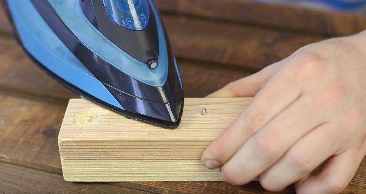 Затем дерево в районе шляпки прогревается при помощи утюга