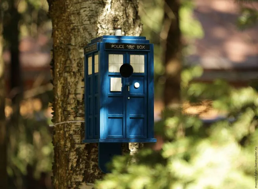 Привлечет внимание птичье жилье в виде почтового ящика или телефонной будки. Возможно, такой дизайн одобрят и птицы.