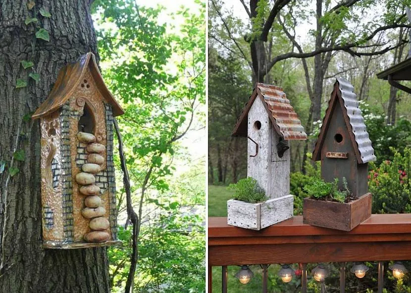 Стилизованные декоративные скворечники встречаются и в интерьере, стоит вспомнить, например, классические часы с кукушкой. Однако более натурально птичий домик смотрится все-таки в саду, где он может стать яркой деталью ландшафта.