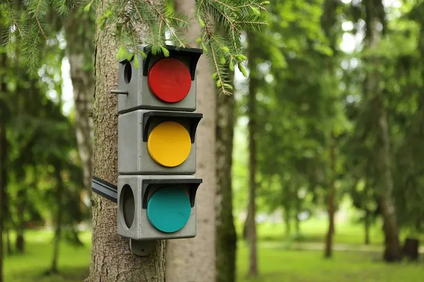 Светофор. Скворечник здесь устроен только на верхнем этаже, остальная часть сугубо декоративная. Делать три домика не имеет смысла — так близко селятся только ласточки, остальные предпочитают иметь частные владения.