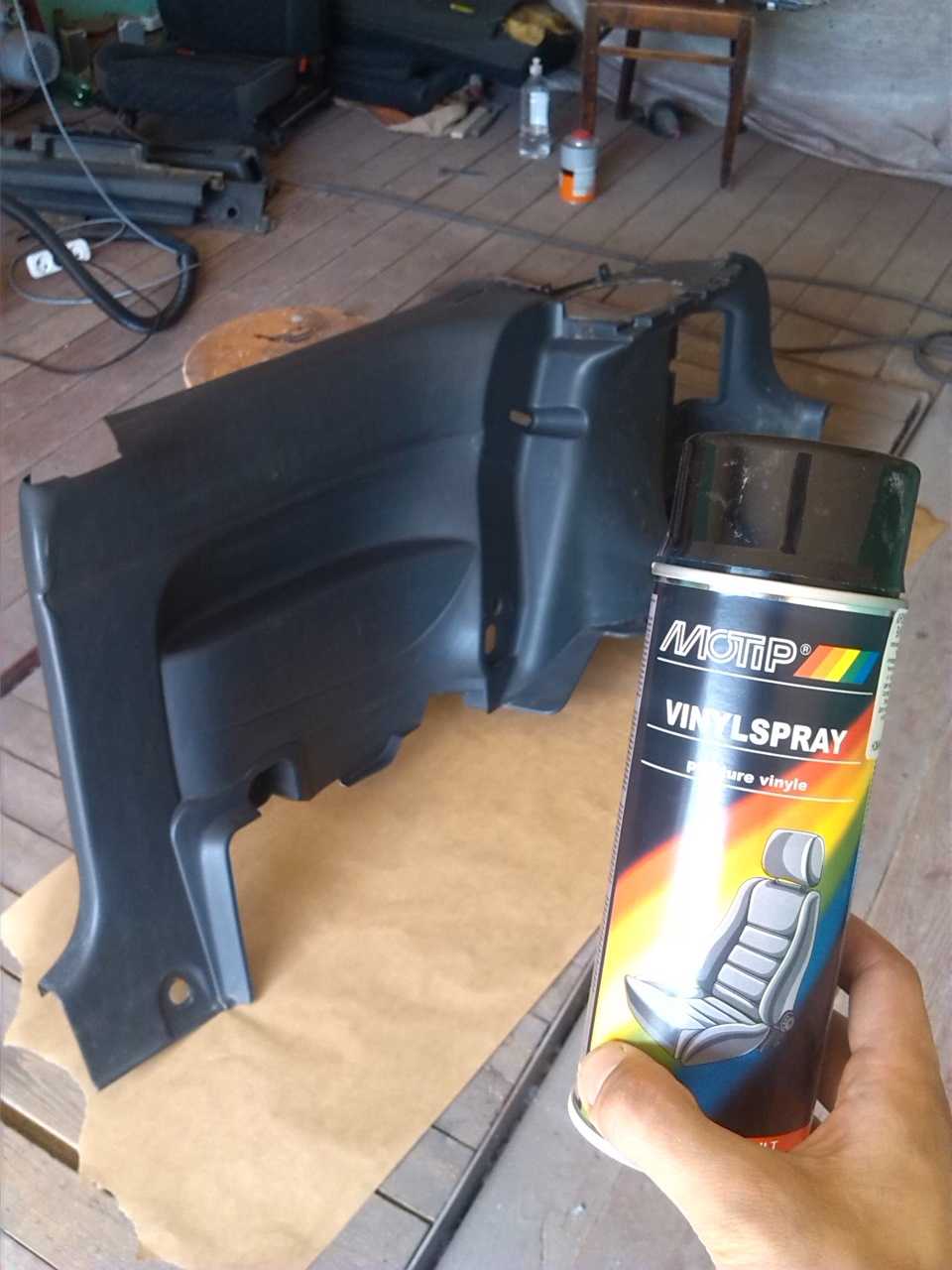 - При покраске пластика салона температура окружающей среды должна быть комнатной или выше, иначе краска будет плохо распыляться и сохнуть.