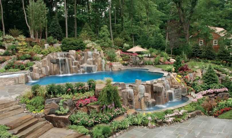 Схема устройства альпийской горки с водопадом и прудом и водопадом