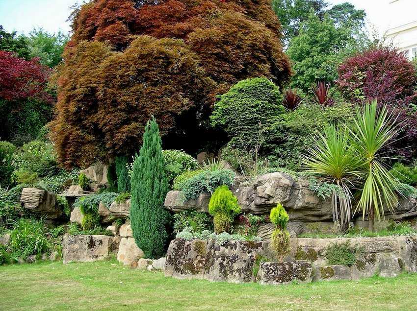 Чаще всего для этого применяют карликовые и стелющиеся сорта кустарников.