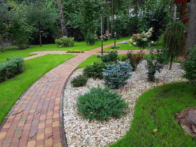 - Должна быть возможность проложить дорожки так, чтобы подход был удобным, но при этом не нарушалась общая планировка участка. Вряд ли кто станет ради такого украшения дачи вырубать плодовые деревья и кустарники.